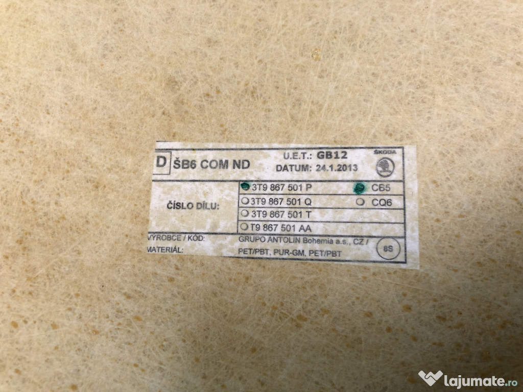 Plafon material Skoda RAPID 2013. Cod(uri): 5JA867501C. Piesele comercializate sunt originale, prove ...