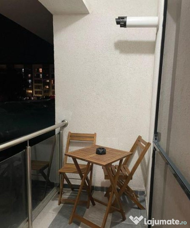 -dispune de loc de parcare, vizibil de la balcon