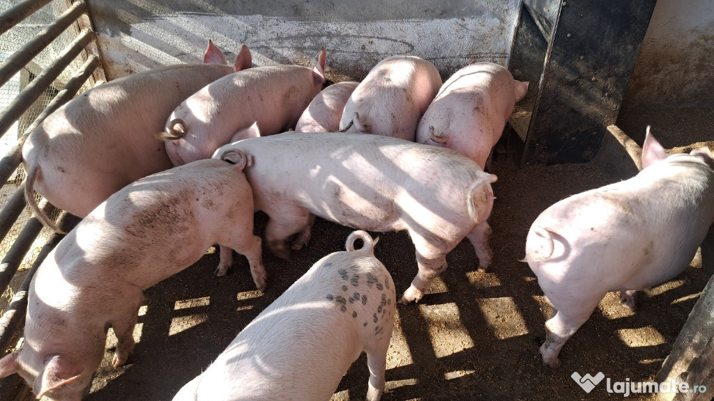 Vând porci rasa marele alb cu landras de sacrificat sau reproducere .Anuntul Porci 50/70 kg crescuți în gospodărie . este adaugat de pe LaJumate.ro.
