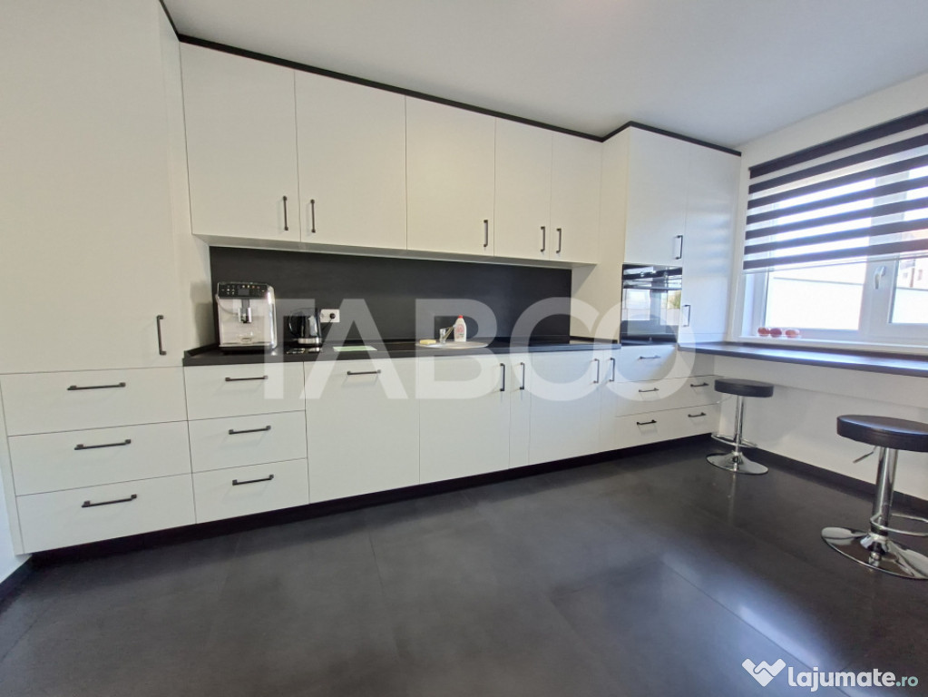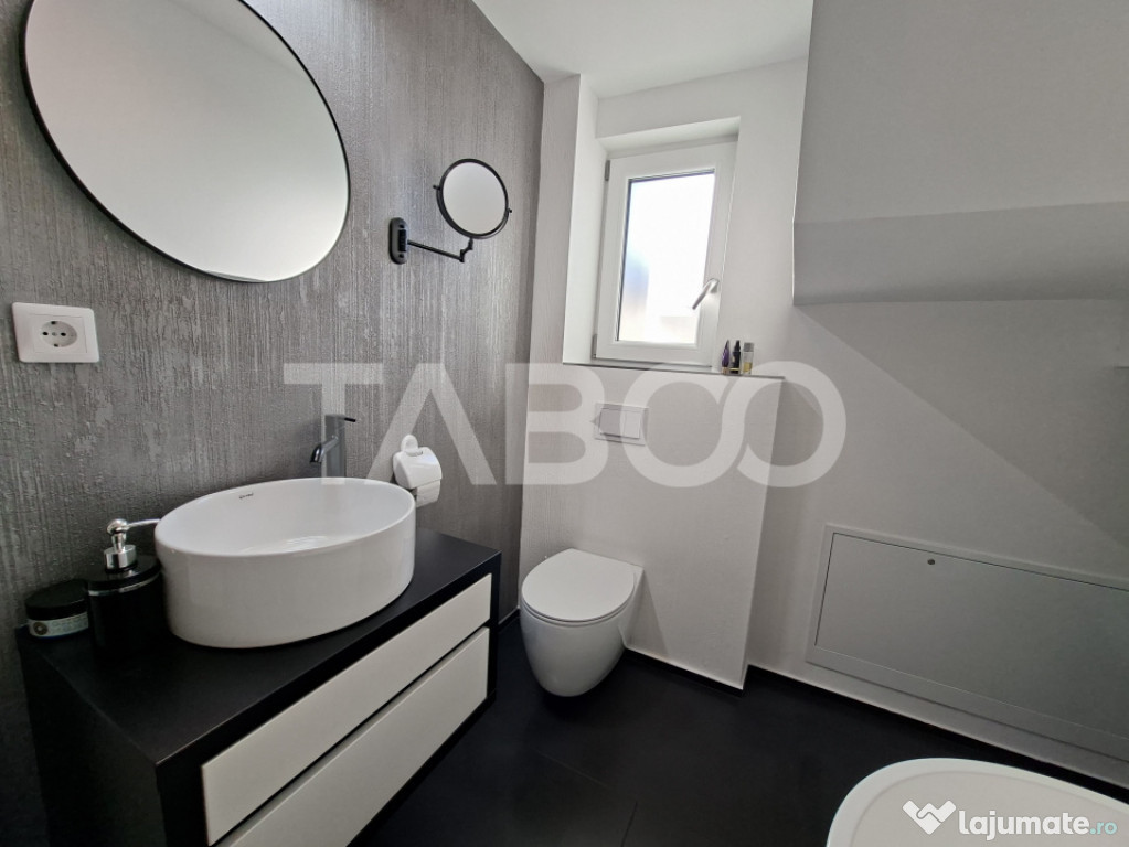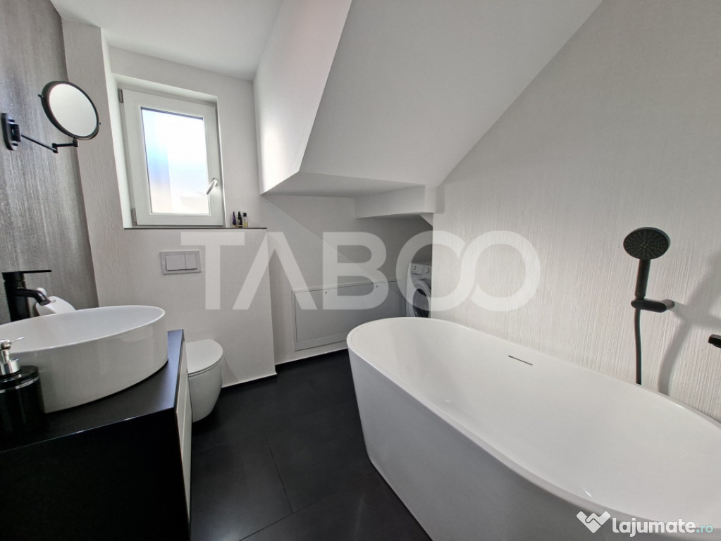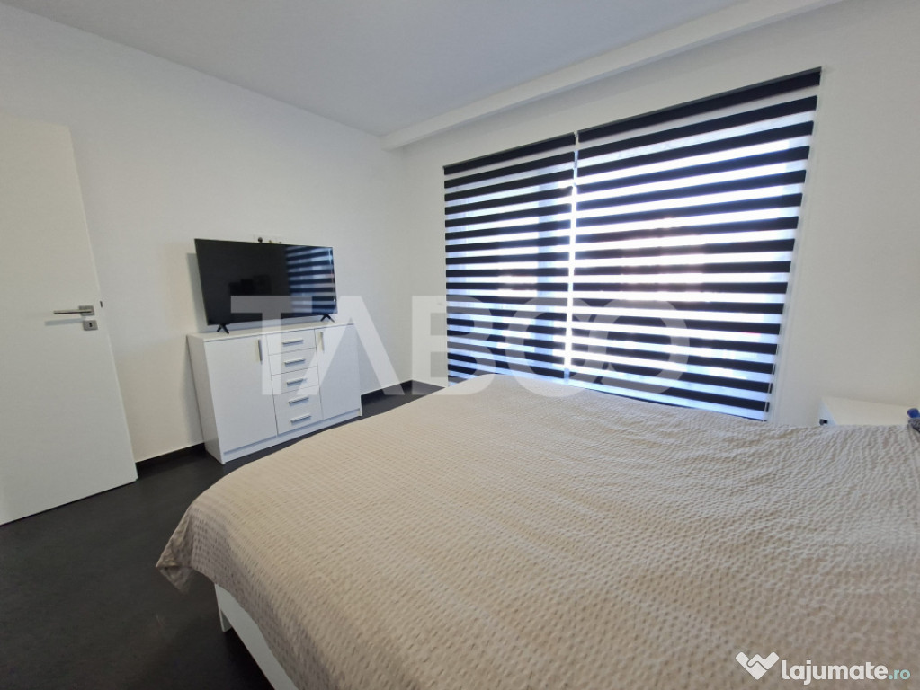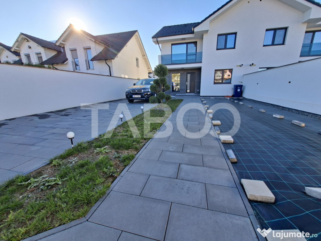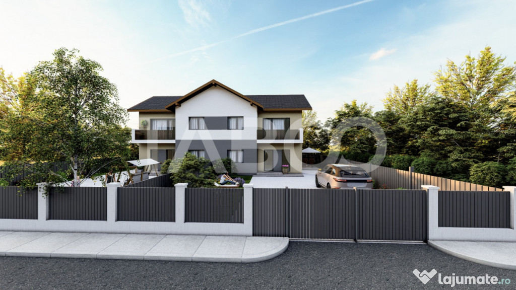 Casa tip duplex cu 4 camere decomandate de vanzare in zona Calea Cisnadiei - Arhitectilor, judetul Sibiu, pozitionata intr-o zona rezidentiala foarte linistita in care predomina contructiile tip vila, constructie noua din 2023.Proprietatea este amplasată pe un teren de 266 mp, cu o curte liberă de 200 mp, acces auto prin poarta automatizata si locuri de parcare (2 în curte și 2 în fața imobilului).
