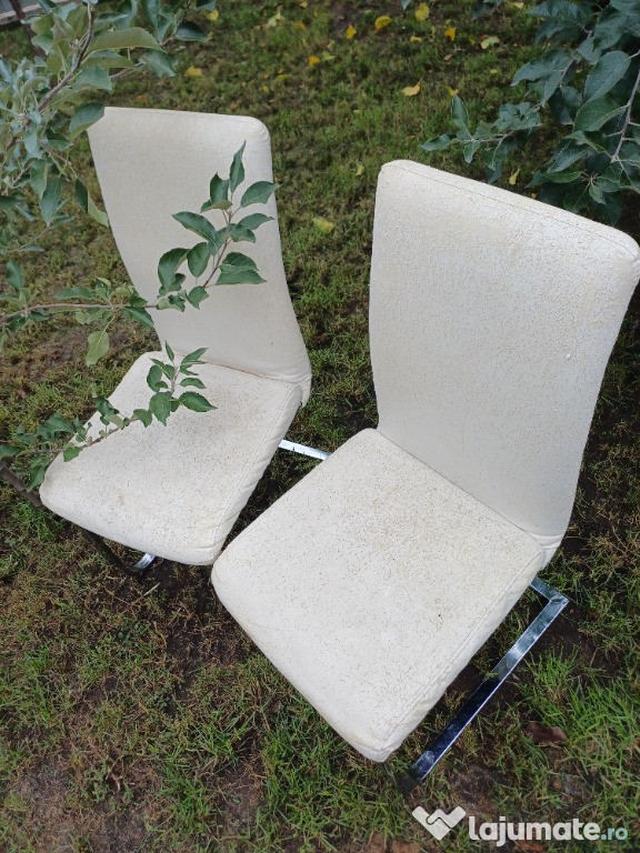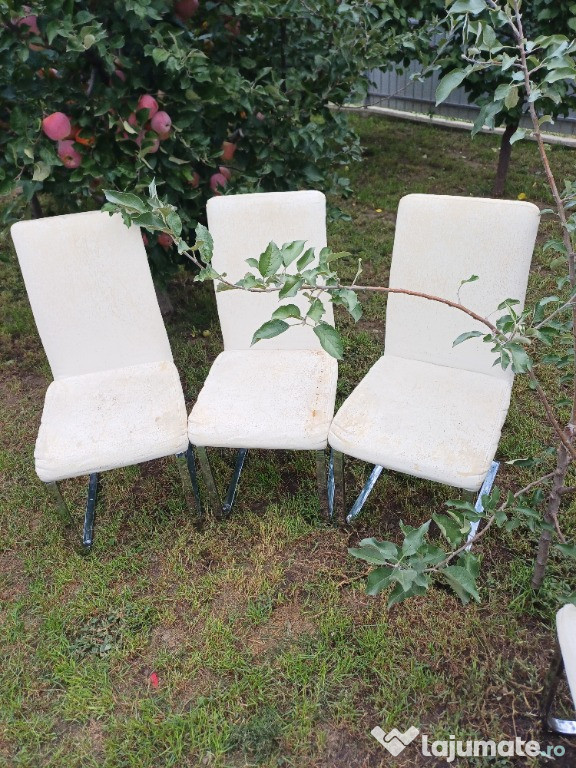 Vand set de 11 scaune cu picior cromat, tapitate, robuste, in stare bună. Detalii la telefon 07498430 ...
