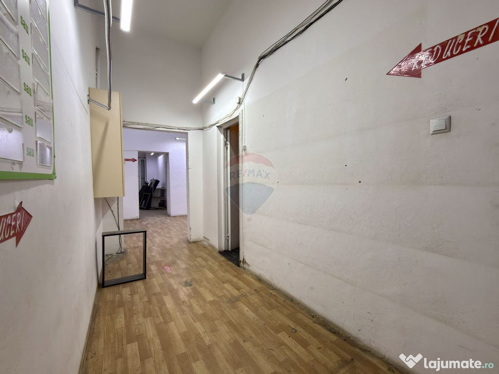 Anterior, a functionat aici un magazin second hand, insa configuratia si pozitionarea il fac potrivit pentru multiple utilizari: retail, cabinet medical, farmacie, salon de infrumusetare, birouri, showroom sau studio de servicii.