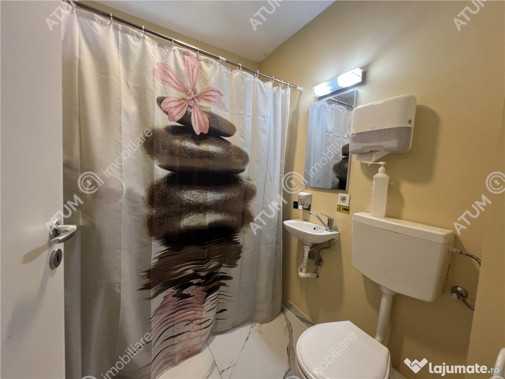 De vanzare in zona Henri Coanda din Sibiu spatiu comercial compus din 2 camere cu 2 bai, 3 locuri de parcare, in suprafata totala de 85,05 mp situat intr-un complex rezidential nou localizat in spatele magazinului Trans Agape.Spatiul este situat la parterul inalt al unui imobil constructie noua edificat in anul 2021, acesta dispune de 4 cai de acces, 3 dintre acestea fiind direct din strada ( separat de locatari ) iar cealalta pe casa scarii cu ceilalti locatari.