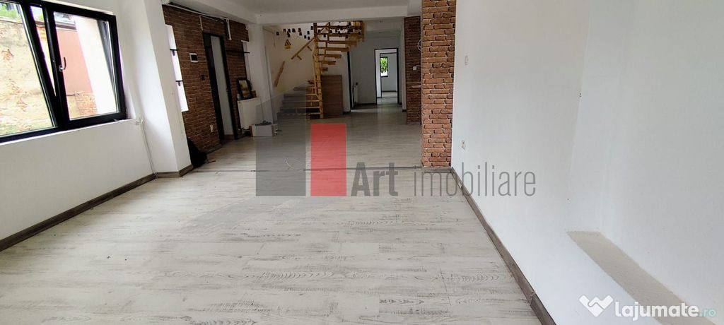 Parter: 90 mp — spațiu generos, open-space, adaptabil pentru recepție, zonă de servire clienți sau birouri