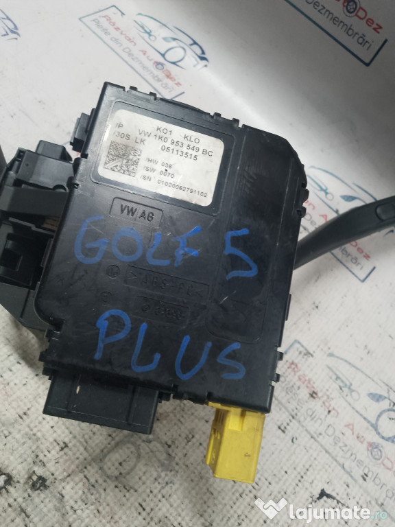 Spira volan + manete Volkswagen Golf 5 Plus 2010. Cod(uri): 1K0953549BC, 1K0959653C. Piesele comercializate sunt originale, provenite din dezmembrari. Dispunem de o gama larga de piese multimarca. Piesele sunt verificate inainte de a fi puse spre vanzare. In caz de neconformitate piesa se poate returna. Va rugam sa verificati disponibilitatea pieselor telefonic. Trimitem in tara prin curier.Marcă: Volkswagen