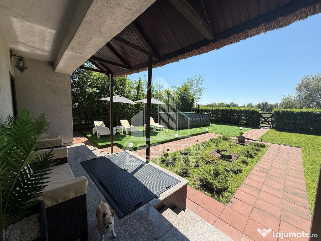 Printre dotarile suplimentare se numara gradina amenajata, zona de gratar, spatiu de relaxare in aer liber, aer conditionat, Wi-Fi, TV, sistem audio, plase impotriva tantarilor, mobilier de calitate si o anexa in stil cabana cu bucatarie mica.
