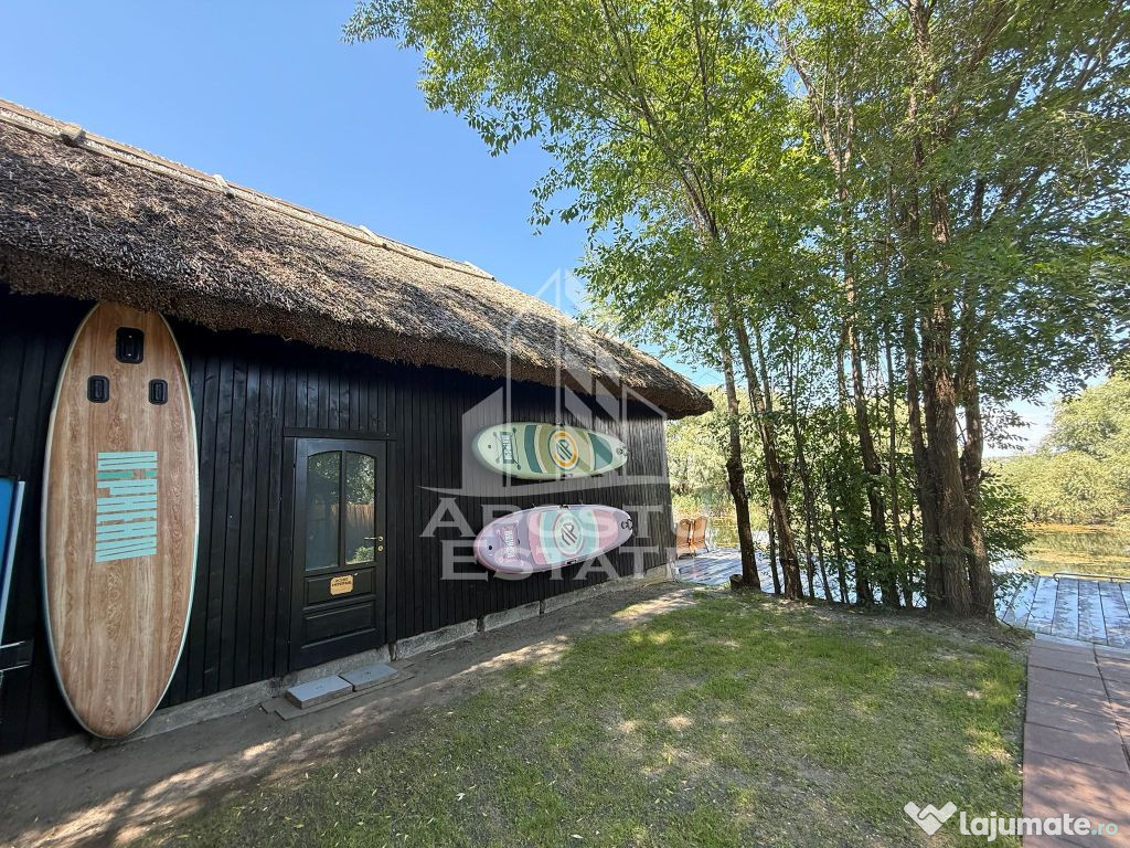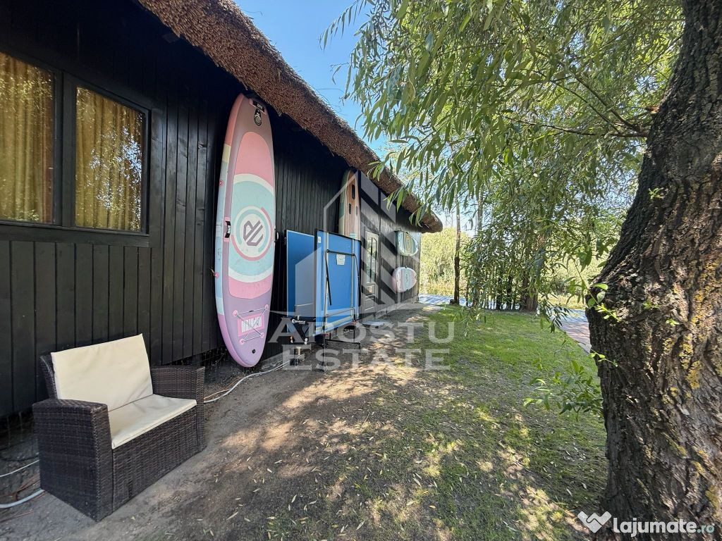 Cele doua pontoane private, unul situat pe canalul Sulina si celalalt pe canalul secundar, ofera acces direct la apa si posibilitati multiple de agrement nautic – un avantaj major si rar intalnit in Delta Dunarii.