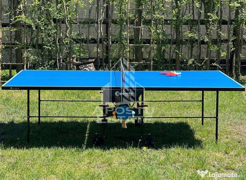 Fiecare jumatate de duplex are acces la o terasa generoasa, acoperita, ideala pentru mesele impreuna cu prietenii sau familia, ori pentru activati si jocuri diverse.