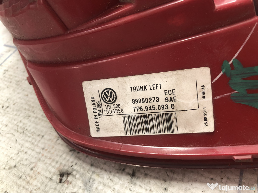 Stop stanga hayon Volkswagen Touareg 2011. Cod(uri): 7P6945093C. Piesele comercializate sunt originale, provenite din dezmembrari. Dispunem de o gama larga de piese multimarca. Piesele sunt verificate inainte de a fi puse spre vanzare. In caz de neconformitate piesa se poate returna. Va rugam sa verificati disponibilitatea pieselor telefonic. Trimitem in tara prin curier.Marcă: Volkswagen