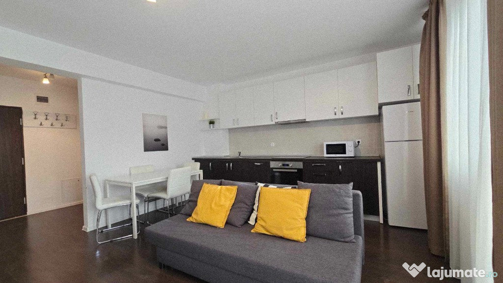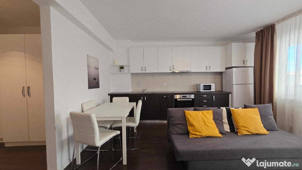 Disponibil acelasi tip de apartament, aceeasi scara, la etajul 6 din 7 (identic mobilat, culorile faiantei si mobilierului usor diferite).