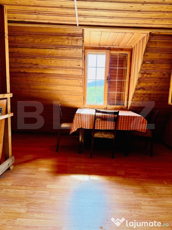 Construită integral din lemn de calitate, cabana îmbină farmecul rustic cu confortul modern. Încălzirea se realizează prin calorifere electrice, iar apa caldă este asigurată de un boiler electric, făcând proprietatea ușor de întreținut pe tot parcursul anului. Această cabană este alegerea perfectă pentru: iubitorii de natură și aer curat, pasionații de pescuit, cei care caută un refugiu de weekend sau o investiție turistică într-o zonă cu potențial.