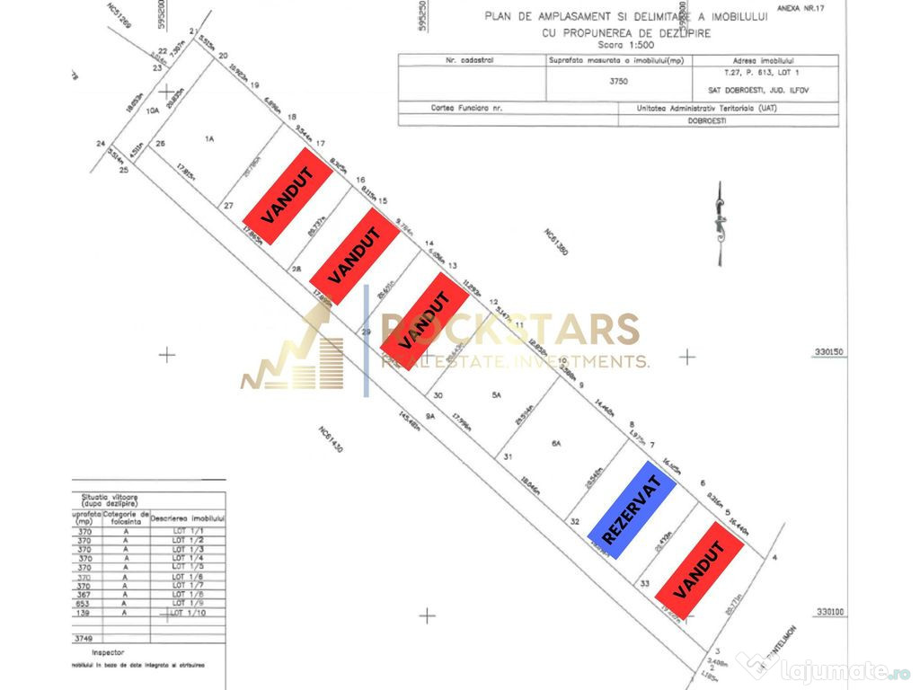 Terenul este format din 8 loturi de cate 370 mp, din care mai sunt disponibile 4.