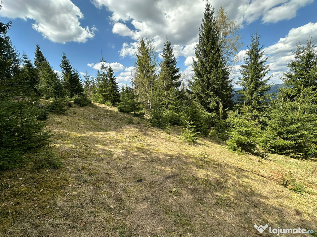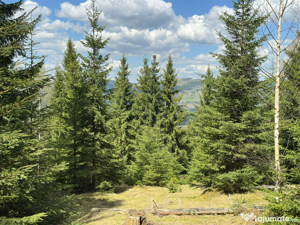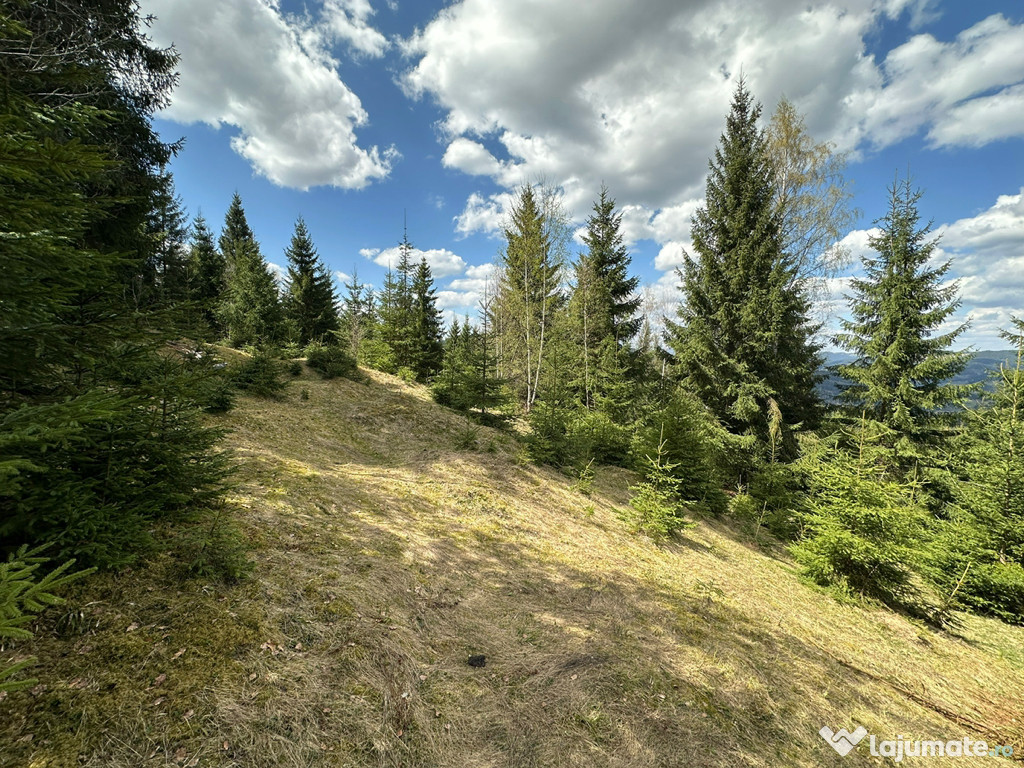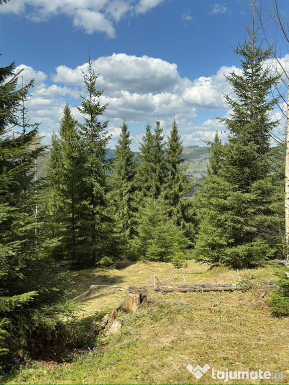 Vând teren extravilan situat într-o zonă superbă, înconjurată de pădure, cu vedere spectaculoasă spre munții din jur.