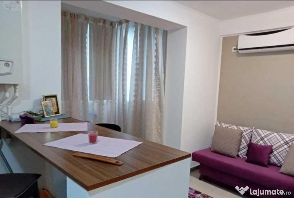 Garsoniera este decomandata, mobilata si utilata complet, masina de spalat rufe, aer conditionat, Tv, aragaz, cuptor electric, microunde, frigider, abonament Tv si internet prin fibra optica. Garsoniera beneficiaza de un balcon inchis, dressing spatios, supraveghere video exterior si interior, pe fiecare scara. Canapeaua este extensibila. / living dormitor Mijloc de transport in comun ( Ratb), in aproprierea blocului Pentru mai multe detalii, va rog sa ma contactati !Confort: 1