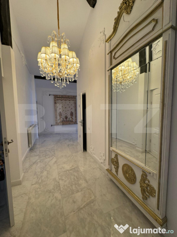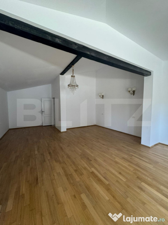 Blitz te invita să descoperi un apartament cu adevărat special – un penthouse elegant de 4 camere, situat la mansarda unui imobil de lux, aflat în cea mai exclusivistă zonă din București – Dorobanți. Cu o suprafață impresionantă de 140 mp, acest spațiu generos combină rafinamentul arhitecturii contemporane cu confortul unui stil de viață sofisticat.Complet mobilat și utilat la standarde înalte, apartamentul beneficiază de finisaje premium, mobilier de designer și electrocasnice de top. Ferestrele largi și înălțimea liberă a mansardei oferă o atmosferă aerisită, cu vibe de loft newyorkez, perfectă pentru un stil de viață urban rafinat.