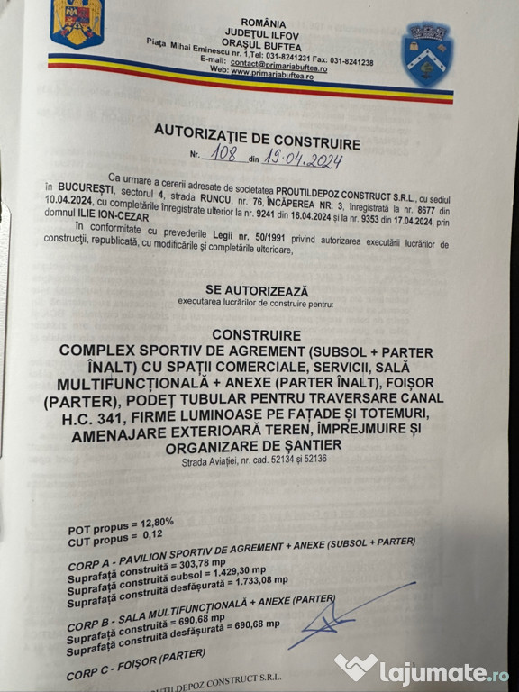 Menționez ca acest proiect este autorizat și beneficiază de Urbanism , Autorizație de Construcție , iar toate avizele și taxele sunt plătite la zi !