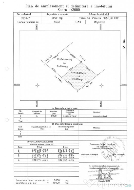 - Teren intravilan cu suprafața generoasă de 5.000 mp, ideal pentru dezvoltare imobiliară sau proiecte comerciale.