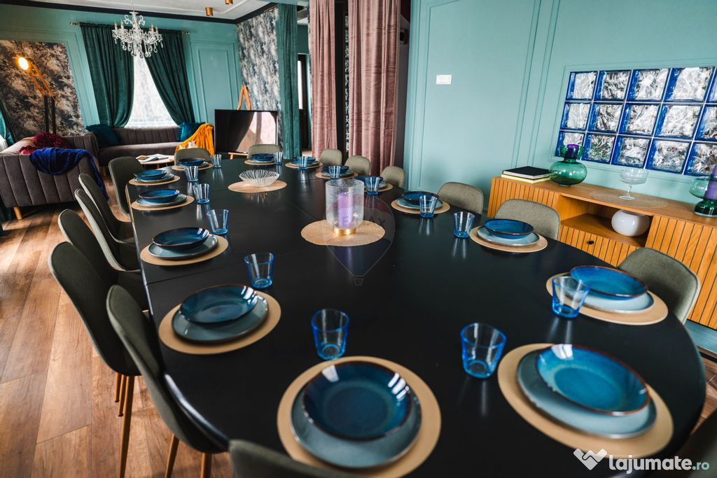 - Living generos cu zona de dining (capacitate 16 persoane)